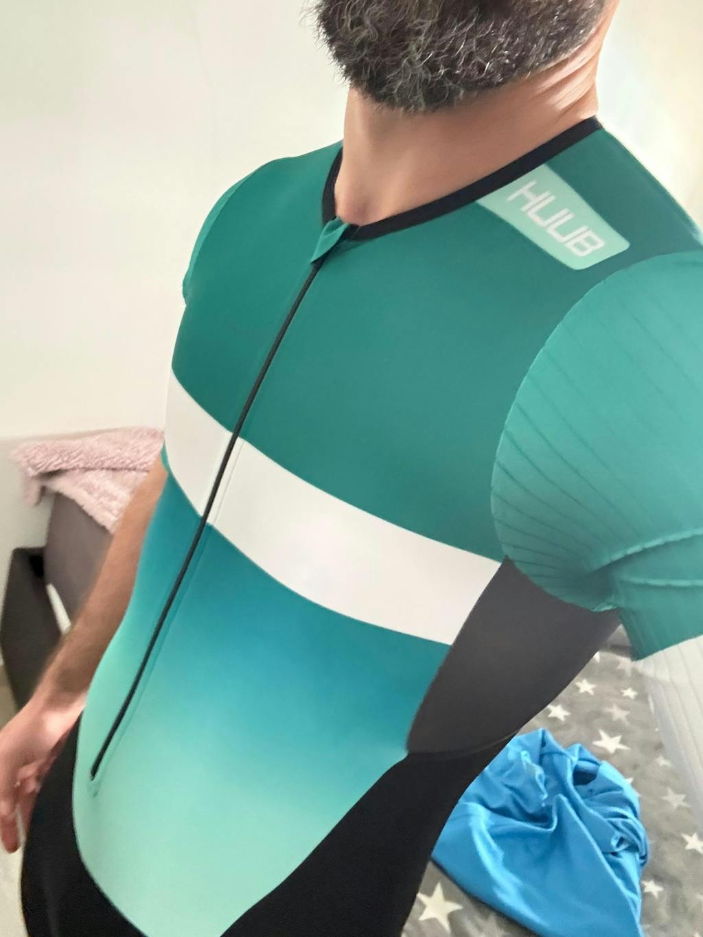 Der Vista Aero Tri Suit von HUUB bietet eine erstklassige Passform, während Mesh-Einsätze die Luftzirkulation verbessern, um Wärme abzuleiten und Ihre Temperatur während des Trainings zu regulieren. Das Streben von Vista nach Leistung und Komfort hat diesen Tri Suit inspiriert, damit Sie Ihre Ziele erreichen können. Das Ergebnis ist ein Anzug mit hohen Standards und viel Liebe zum Detail. Er verfügt über die neuesten Technologien in Kombination mit einem marktführenden Anzugdesign, einschließlich aerodynamischer Vorteile durch gerippte Ärmel, die die Grenzschicht aufbrechen und Ihre Geschwindigkeit und Leistung im Rennen verbessern. Das Sitzpolster wurde über Jahre hinweg entwickelt und bietet Polsterung, wo sie in der TT-Position benötigt wird, ist aber dennoch minimal, damit Sie beim Laufen nicht behindert werden. Der Anzug hat eine leistungsorientierte Passform, die die aerodynamischen Eigenschaften ergänzt, mit aufgedruckten Silikongreifern, die den Tri-Anzug an den Beinen an Ort und Stelle halten, und gefalteten Manschetten an den Ärmeln, die für eine bequeme Passform sorgen. Er verfügt außerdem über aerodynamische Rückentaschen, die groß genug sind, um Nahrung und wichtige Utensilien für das Rennen aufzunehmen.